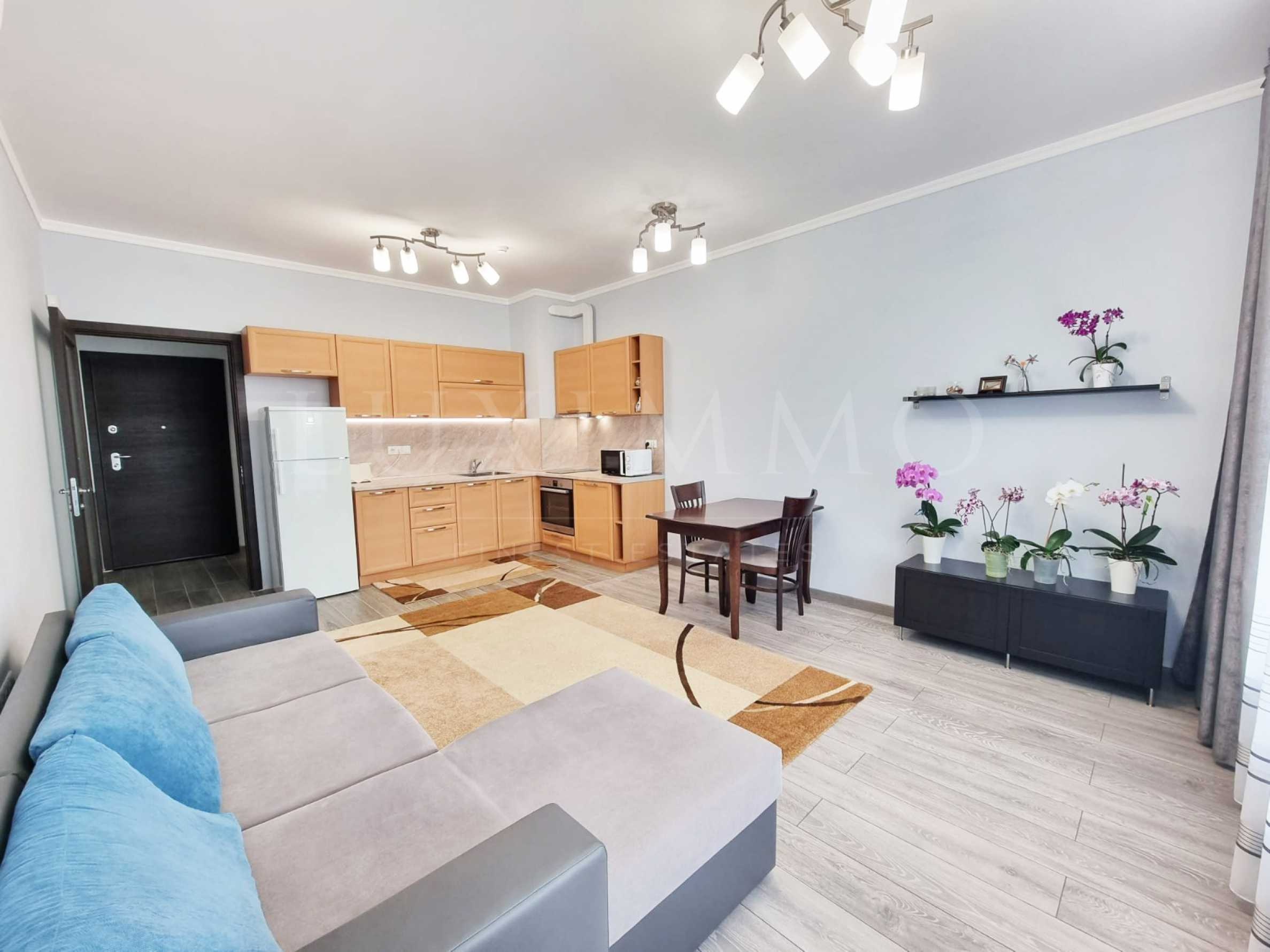 Предлагаем на продажу полностью меблированную двухкомнатную квартиру в символическом здании рядом с Морским садом, в престижном комплексе Лазур, Бургас.