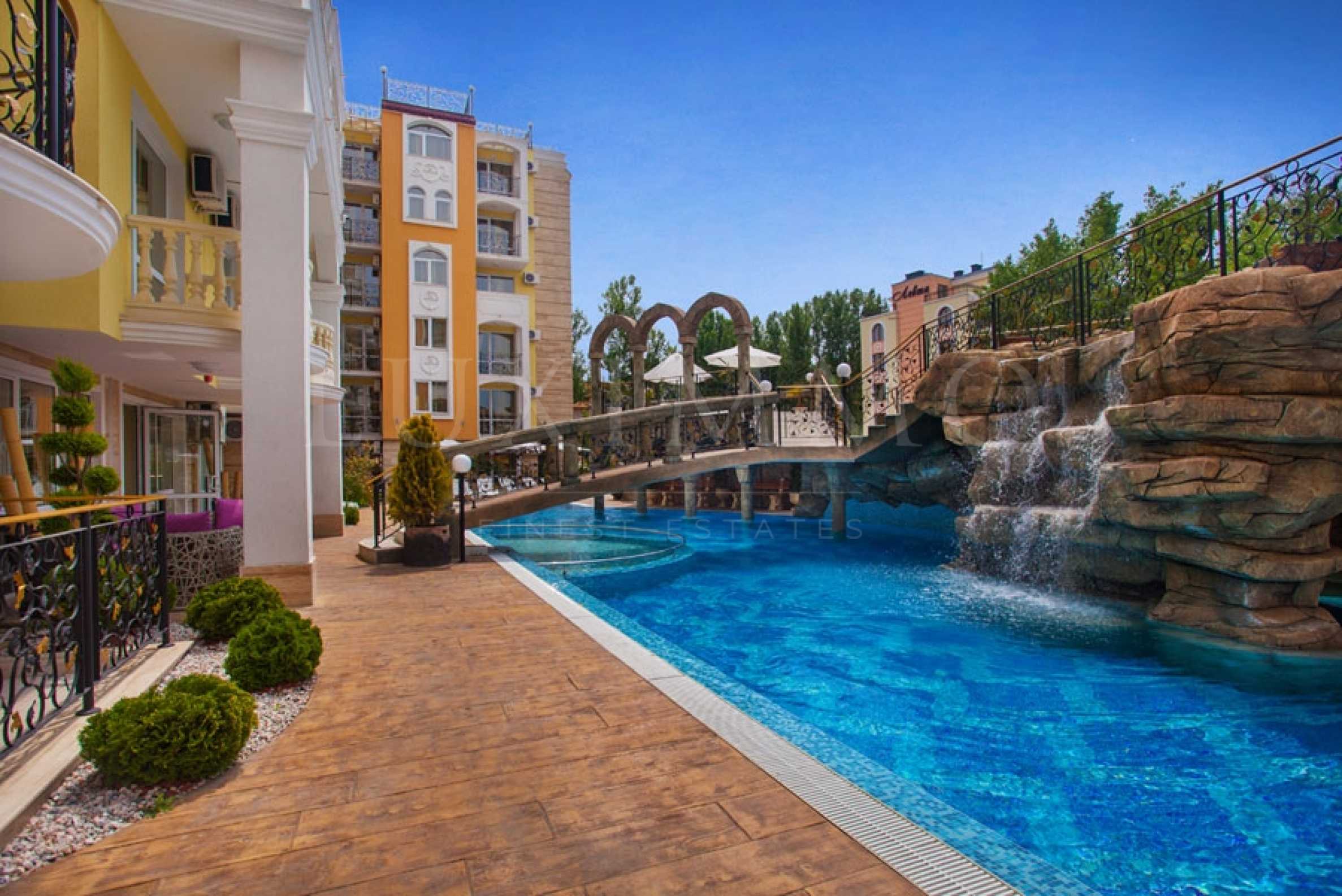 Красиво меблированная двухкомнатная квартира площадью 62 м2. по СУПЕР цене 789 евро / м2. в роскошном комплексе в средиземноморском стиле, расположенном в районе аквапарка Action на Солнечном берегу.