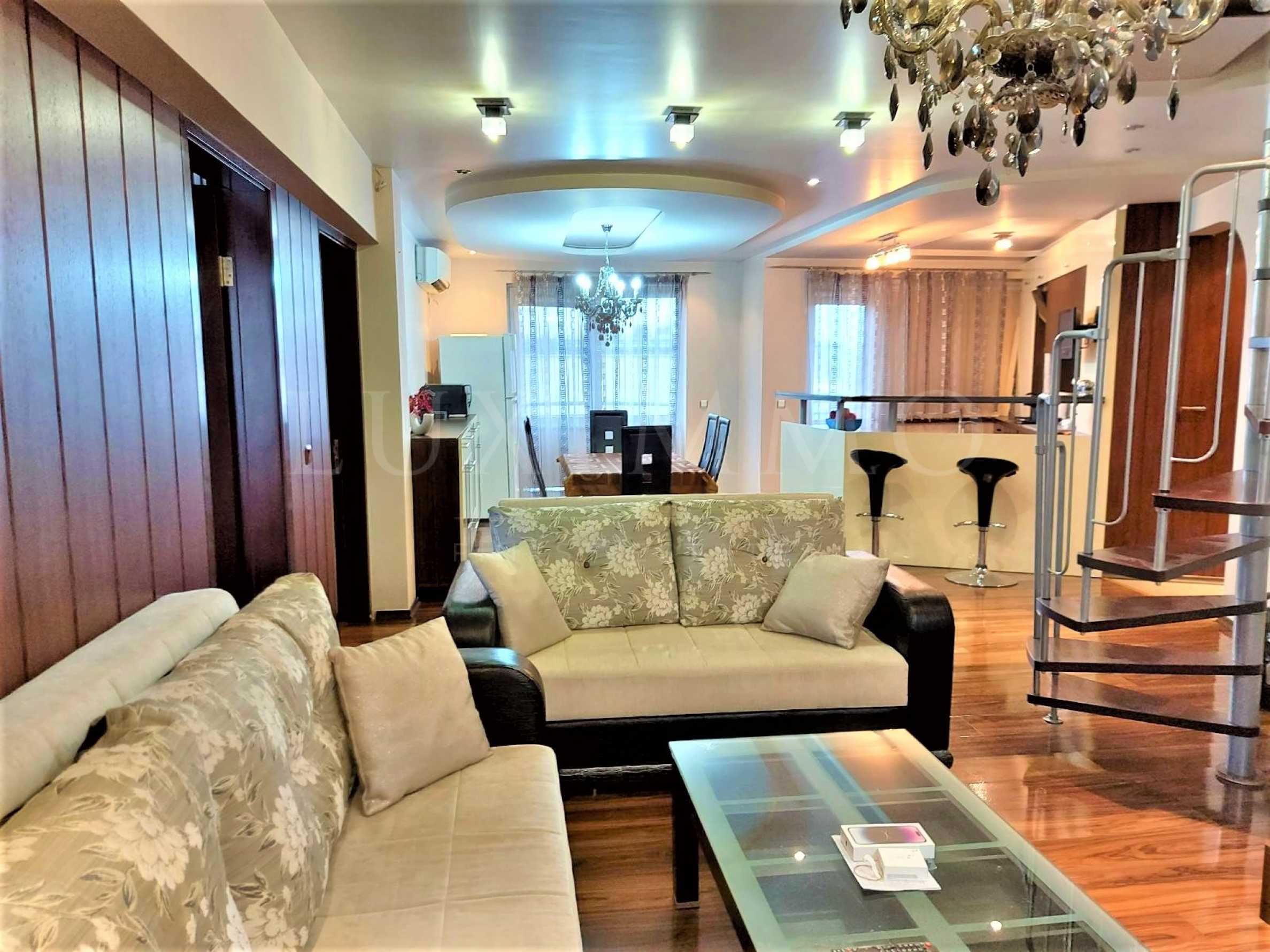 Мы представляем просторную, удобную семейную собственность, мезонет с четырьмя спальнями и крытой парковкой, в самом центре города Русе.