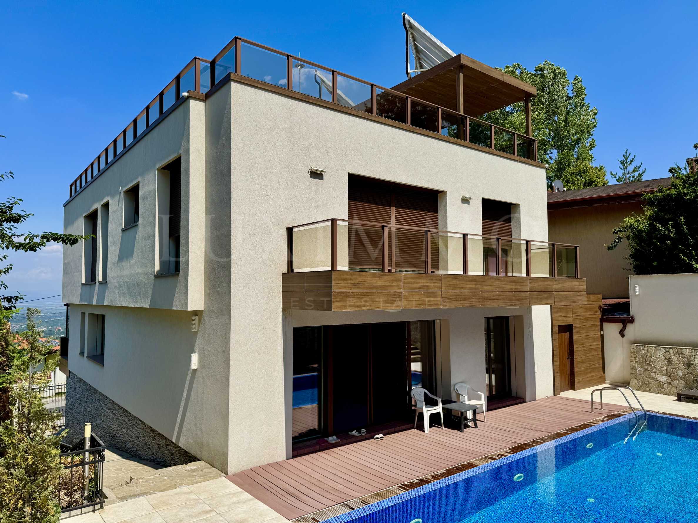 Представляем вам роскошно обставленный дом, расположенный среди свежего воздуха и тишины, с впечатляющей панорамой города и гор на 360 градусов. Недвижимость сочетает в себе современную архитектуру, первоклассные удобства и простор, обеспечивая уникальное чувство комфорта и уединения.