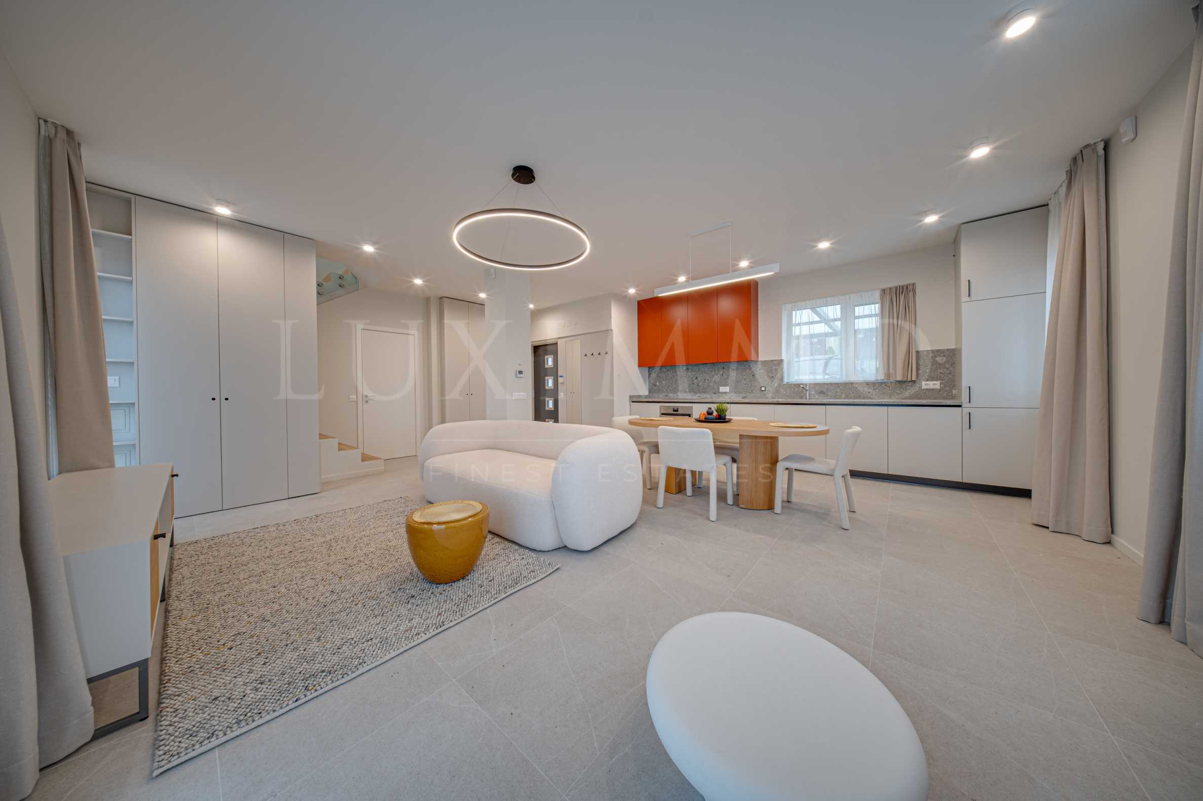 Односемейный таунхаус с тремя спальнями в жилом комплексе «Residential Park Lozen». Новейший закрытый жилой комплекс от компании «Lindner», отличающийся комфортной и безопасной средой для жизни за городом. Комплекс имеет контролируемый доступ, просторные ухоженные зеленые зоны, детские площадки, места для отдыха и занятий спортом. До центра столицы можно добраться за несколько минут. Основные дороги — бульвары «Околоврастен Пат» и «Цариградско Шосе». До бизнес-парка «София», торгового центра «София Ринг Молл», «ИКЕА» и других крупных торговых центров в этом районе можно доехать за 10 минут.