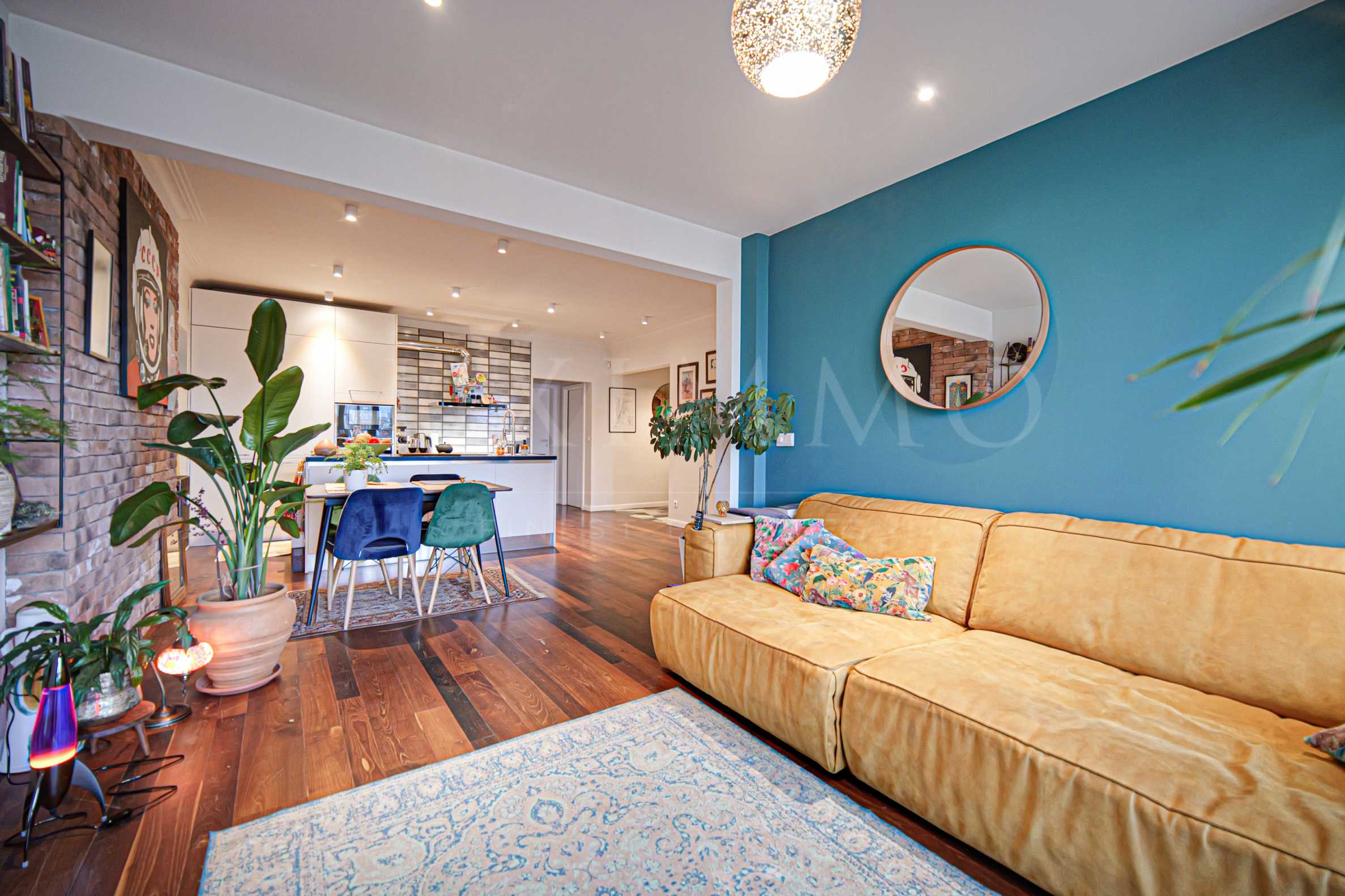 Квартира отделана качественными материалами, светлая, с потолками выше 3 м, пол - натуральный деревянный паркет и гранитная плитка, меблировку новая и придает современный и художественный вид. Кухня сделана на заказ, с островом, вся бытовая техника Bosch. Ванные комнаты и туалеты имеют современный и чистый дизайн.