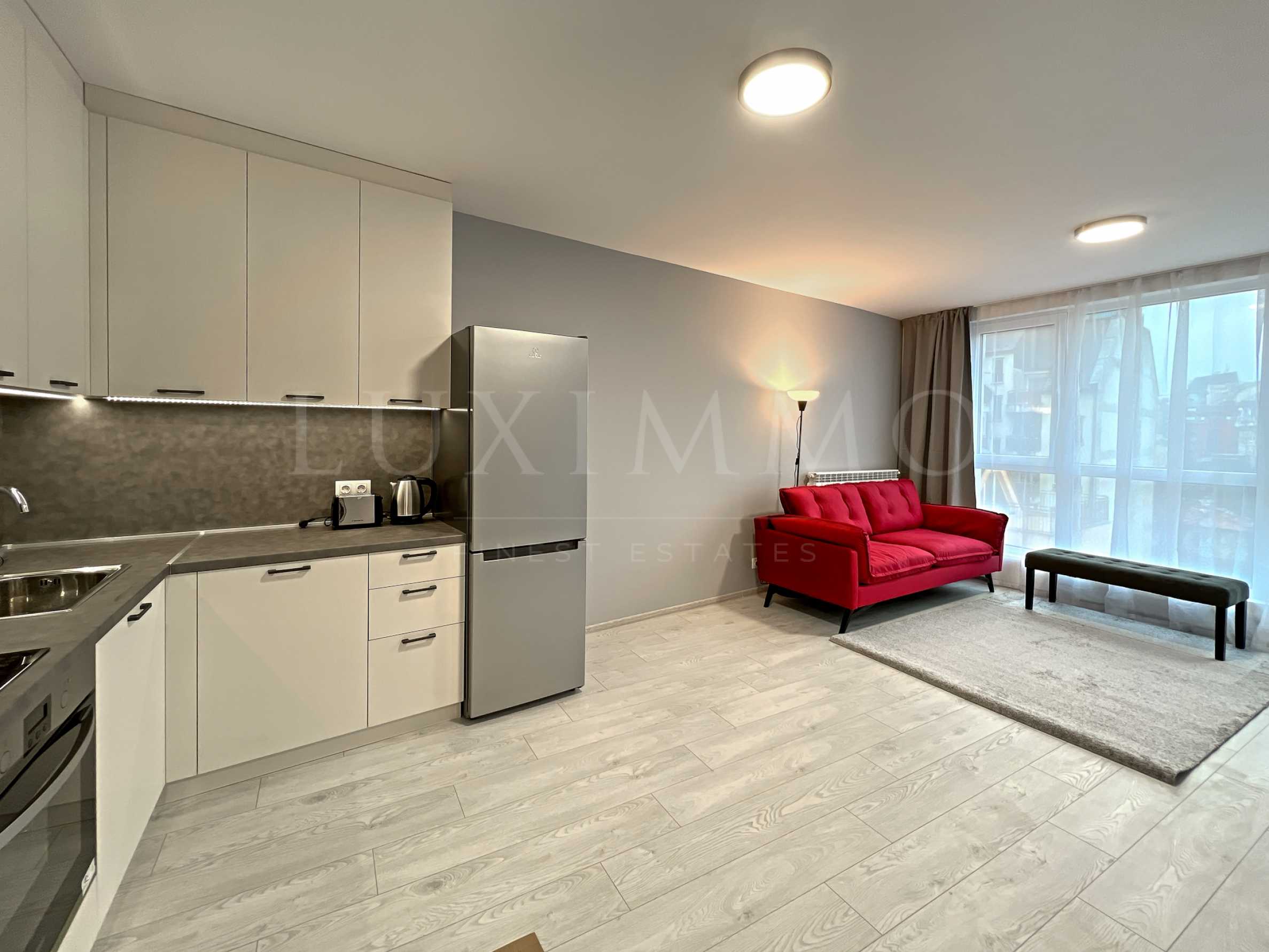 Недвижимость расположена в отлично сохранившемся новом здании, на пятом из семи этажей, светлая, внутренняя часть здания, на среднем этаже. В здании есть лифт, а квартира предлагает будущим арендаторам прекрасный вид на гору Витоша.