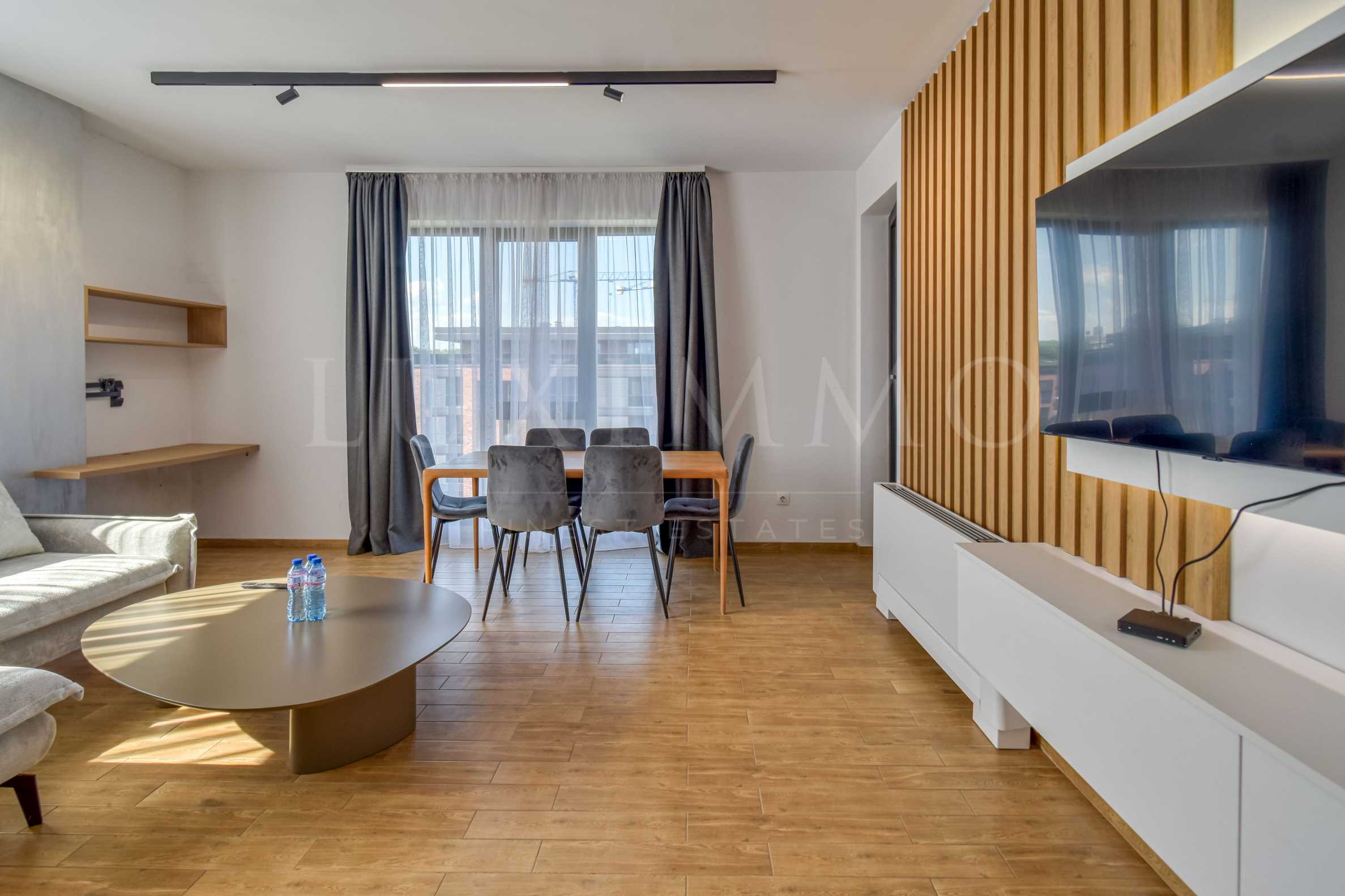 Квартира сдается полностью меблированной. Интерьер в теплых, землистых тонах, комнаты с французскими окнами, просторные и светлые, что обеспечивает полный комфорт.