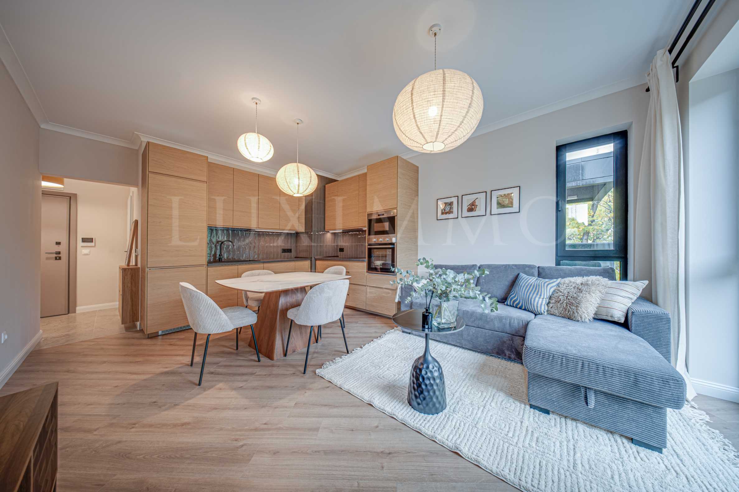 Квартира сдаётся полностью меблированной, с высококачественной электротехникой и меблировкую по дизайнерскому проекту. Светлые, уютные и комфортные комнаты. Тёплые, натуральные тона, французские окна добавляют простора и света. Практичные и интересные дизайнерские решения обеспечат вам максимальный комфорт.