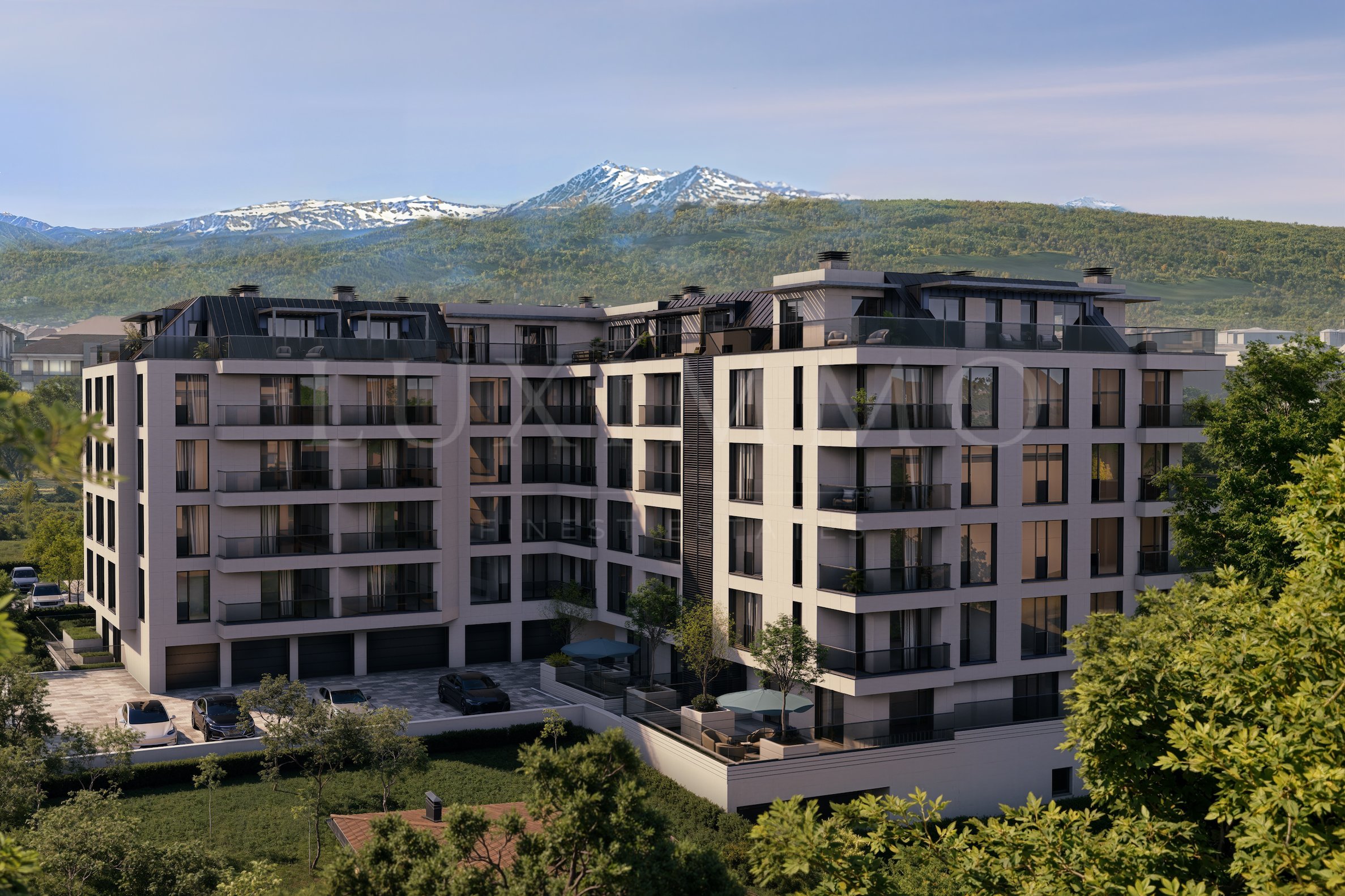 Комплекс обладает рядом ключевых преимуществ. Современная архитектура с самобытным дизайном, здание построено из высококачественных материалов с продуманной до мелочей отделкой. На верхнем этаже расположены роскошные пентхаусы, а из некоторых апартаментов и пентхаусов открывается панорамный вид на гору Витоша.