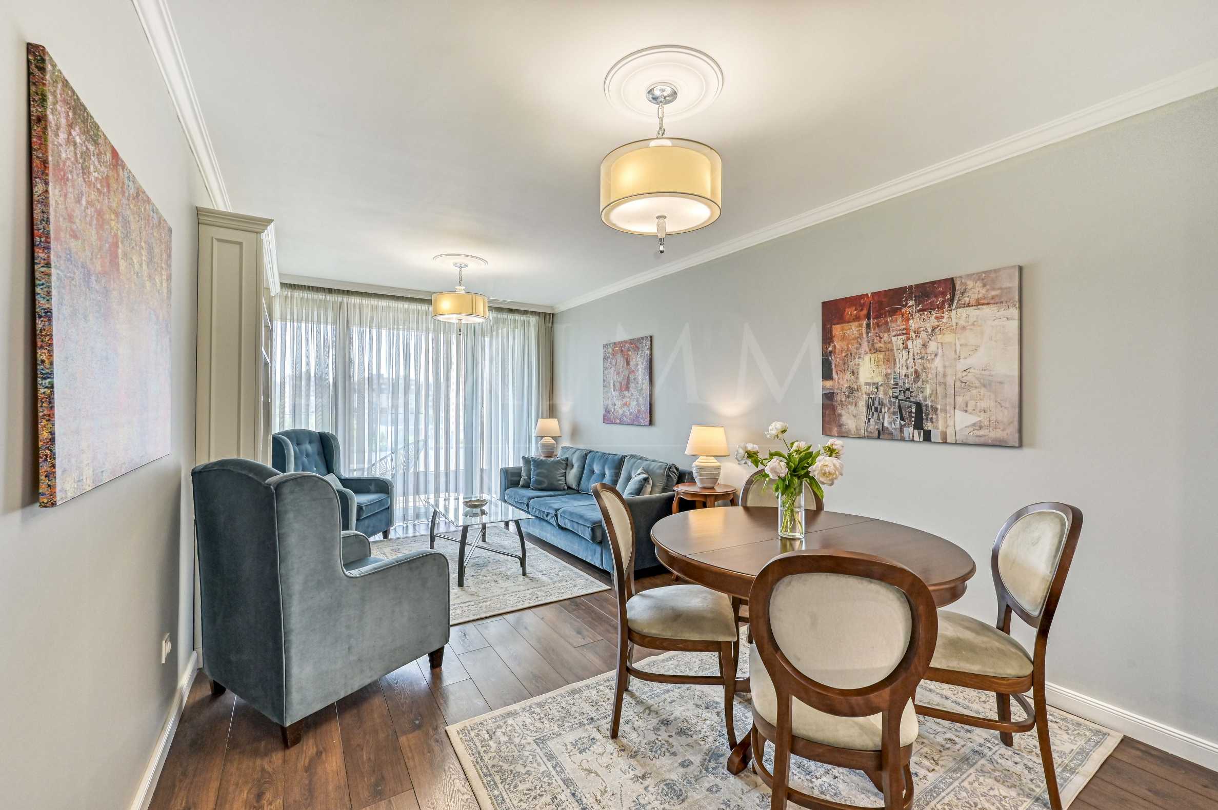 Квартира отделана высококачественными материалами с вниманием к каждой детали. Интерьер сочетает в себе современную эстетику с ощущением уюта и комфорта.