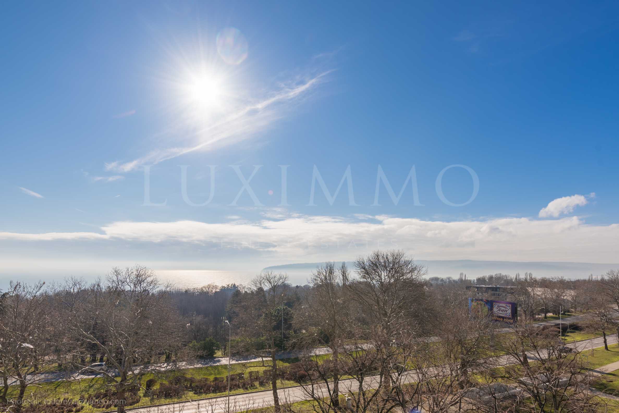 Вид из гостиной и двух террас перед ней на юг/юго-восток, а панорама моря и морского залива Варны не замаскирована, поскольку здание расположено на первой линии Морского сада. Спальни выходят на север и запад.