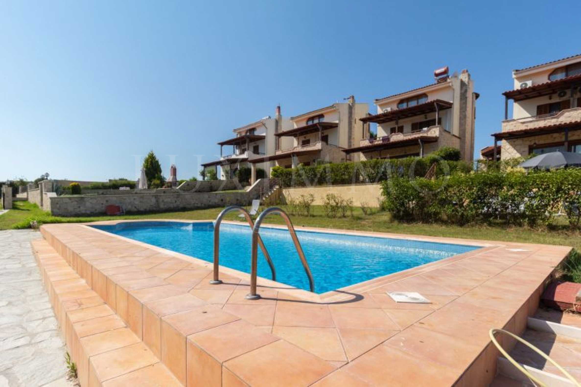 Таунхаус, Kassandra, 160 м?, вид на море, открытый вид, Восточная ориентация, Беспрепятственный постоянный вид, Угловой участок, За городом, Вид на море, Близко к морю, Ориентация на юг, Освещенная, Встроенная кухня, Общий бассейн снаружи, Меблированная, Бытовая техника , Бронированная дверь, москитные сетки, после ремонта, можно разделить на два дома, большие террасы
