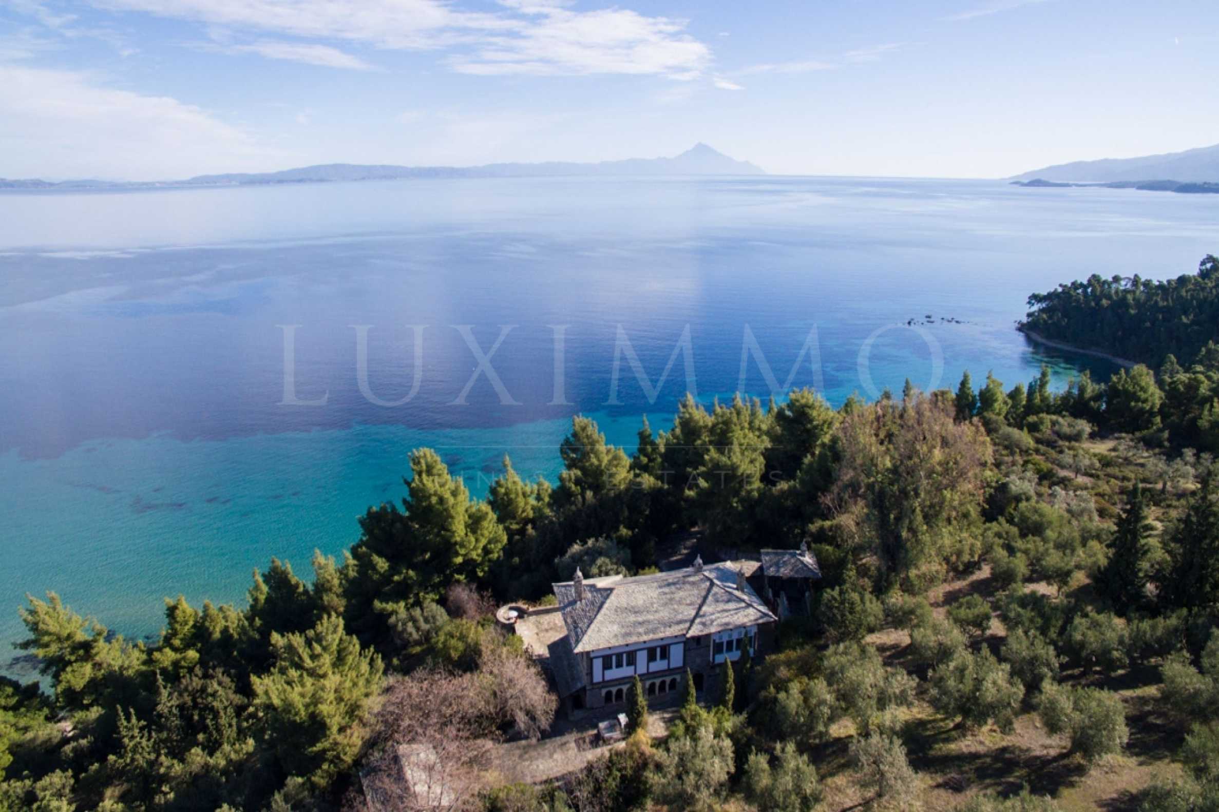 Уникальная каменная вилла, 400 м², в Ситонии, Халкидики с восточной ориентацией и с беспрепятственным постоянным видом на бухту горы Афон. Собственность построена на холме и окружена 4,350 м² сосновой площадью. Разделенный на три уровня, состоящий из трех гостиных, просторной кухни, четырех спален, четырех ванных комнат, трех туалетов и двух кладовых. В собственности также имеются большие балконы, деревянные столярные изделия, сверление, оливковая роща, барбекю и киоск.