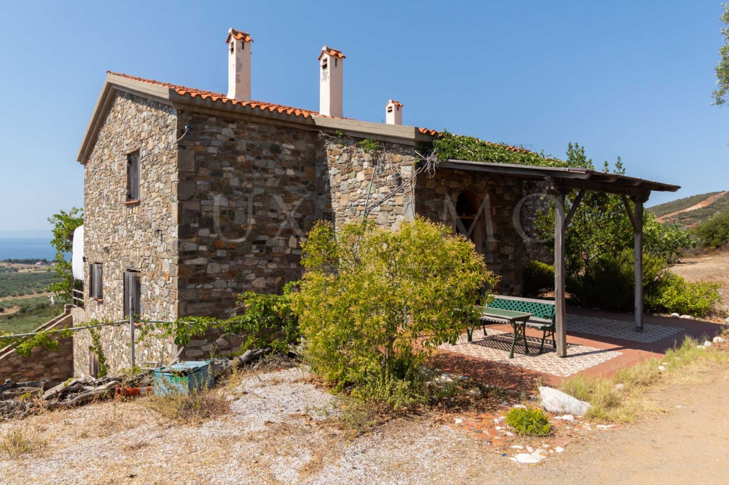 Каменный отдельно стоящий дом, 302 м², в Ситонии, Халкидики с западной ориентацией и с беспрепятственным постоянным видом на море. Свойство 2 км. от пляжа, 3 км. от центра поселка и окружен 13,5-акровым участком. Дом разделен на три уровня, состоит из гостиной, соединенной с кухней и столовой, двух спален и двух ванных комнат на первом этаже, двух спальни и ванная комната на первом этаже и кладовая с котельной на цокольном этаже. В собственности также есть большие балконы и сигнализация. Дом полностью оборудован и меблирован.