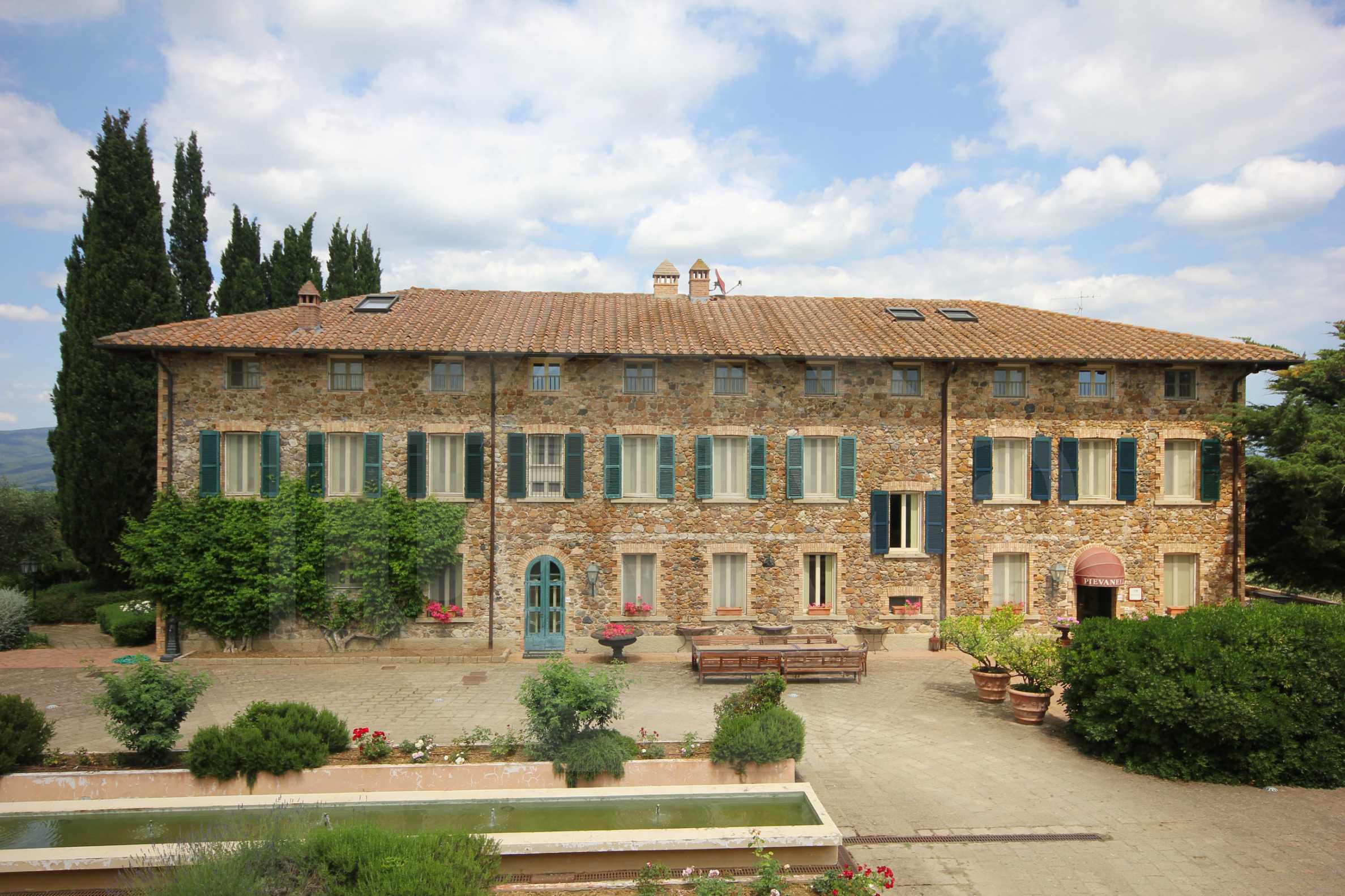 Главный дом – элитное историческое здание, красиво отремонтированное, включающее 13 комнат с ванными, 3 сьютов и 5 апартаментов.